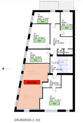 Wir vermieten mehrere Einzelbüros im 2. Obergeschoss eines ruhigen Bürotrakts in Leverkusen / Manfort – jedes Büro als eigenständige, abgeschlossene Einheit.